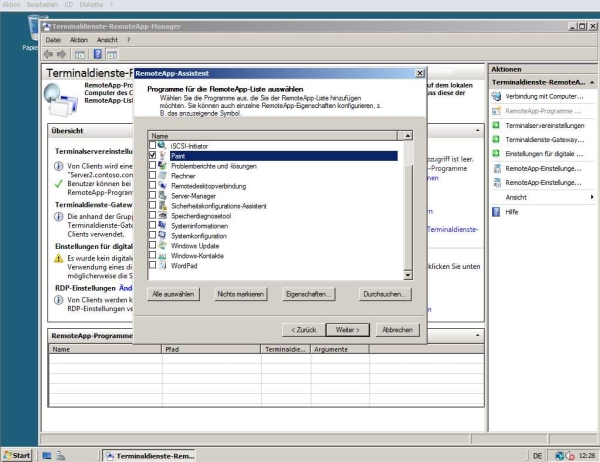 in der rechten Spalte unter Aktion RemoteApp-Programme hinzufügen anklicken