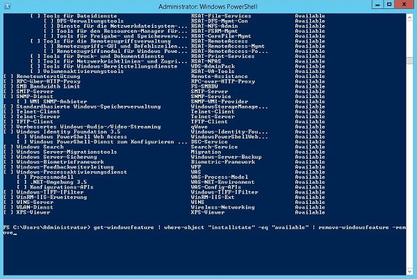 sie in der Powershell den folgenden Befehl ein Get-WindowsFeature | Where-Object Installstate -eq Available |