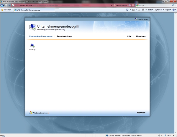 Benutzer wird bei den RemoteApp-Programmen der virtuelle Desktop angezeigt.